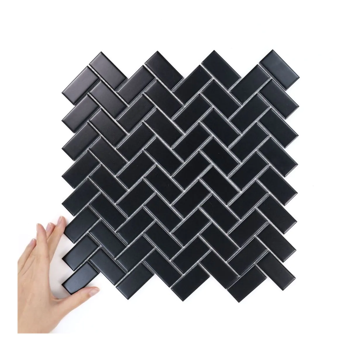 Inspirația pentru Herringbone Negru Mată a venit din parchetul tradițional din lemn, care astăzi capătă o nouă formă sub aspectul unei mozaicuri atemporale.