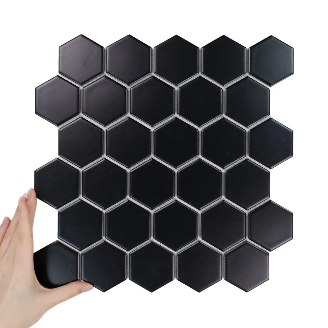 Țiglă Hexagon Mare Negru Mată