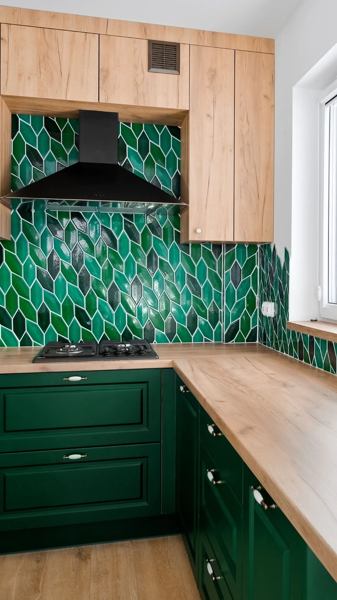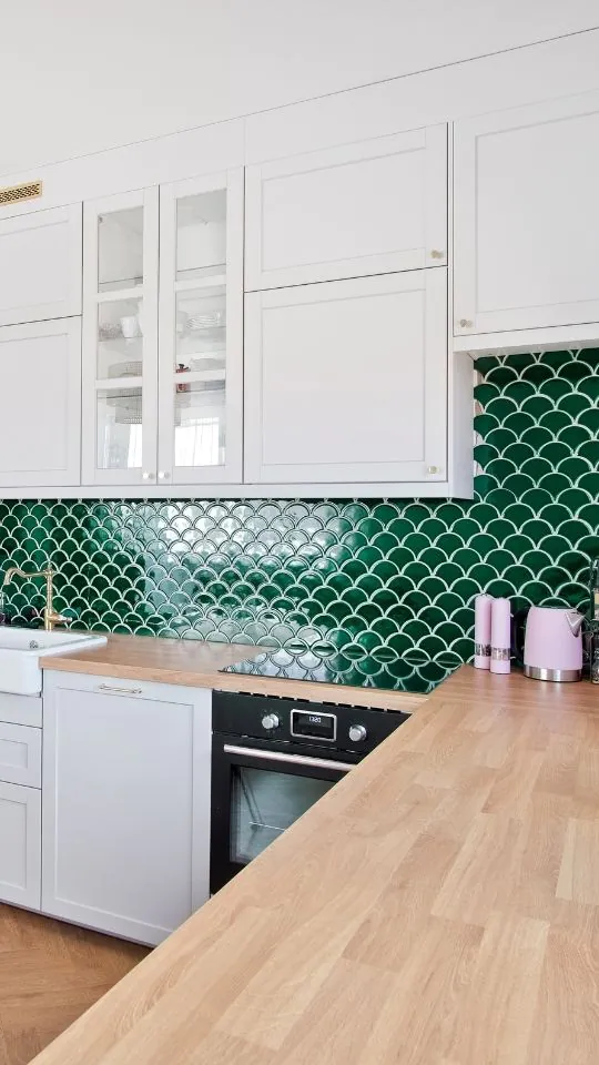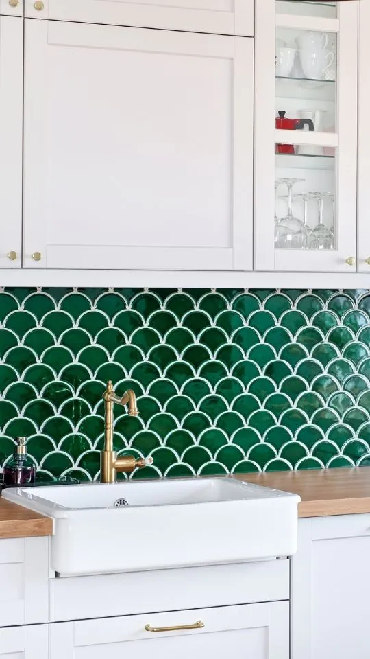 O mozaică aleasă cu înțelepciune este un element atemporal de decor, al cărei culoare intensă nu va ieși niciodată din modă. În plus, mozaicul Flabellum Mare Emerald Lucioasă va fi un accent stilat pentru o bucătărie albă și delicată, în care consumul meselor va deveni o adevărată plăcere.