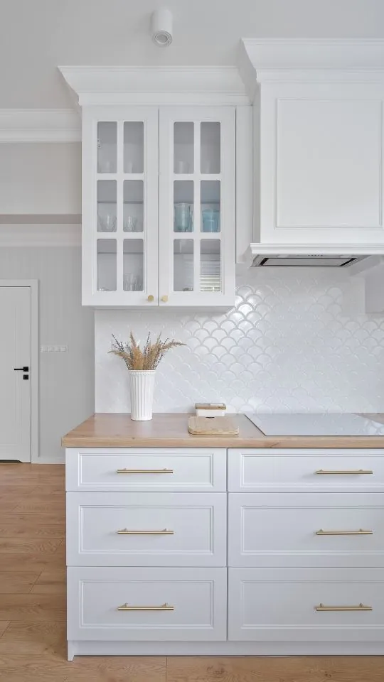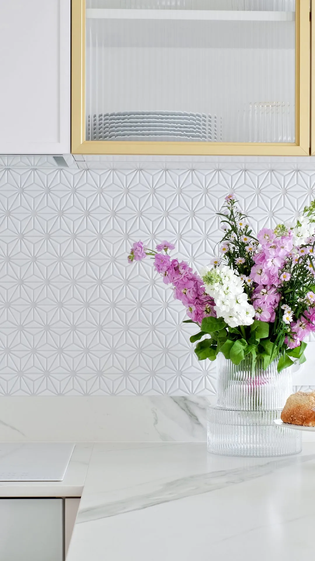 Flabellum White Mată este un mozaic atemporal. Forma unică de solzi de pește, plăcile perfect calibrate, care nu absorb murdăria, praful și previn formarea mucegaiului, reprezintă alegerea ideală pentru amenajarea unei bucătării liniștite și temperate.