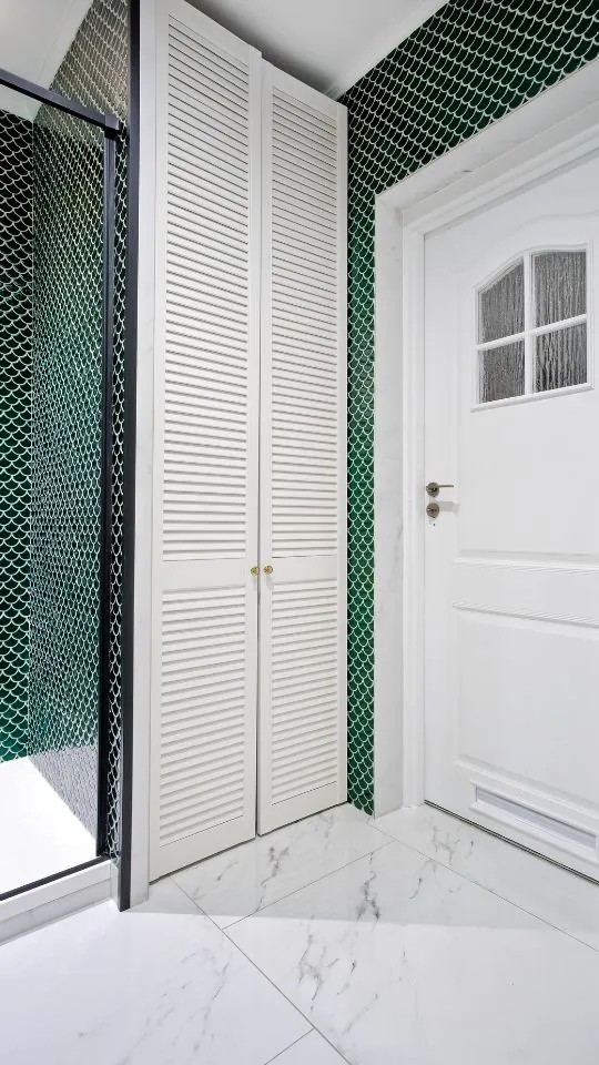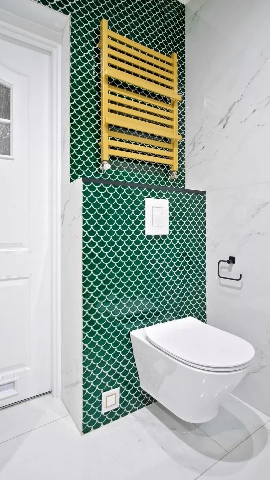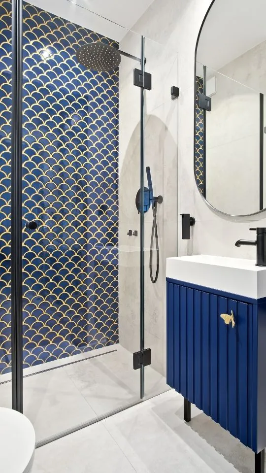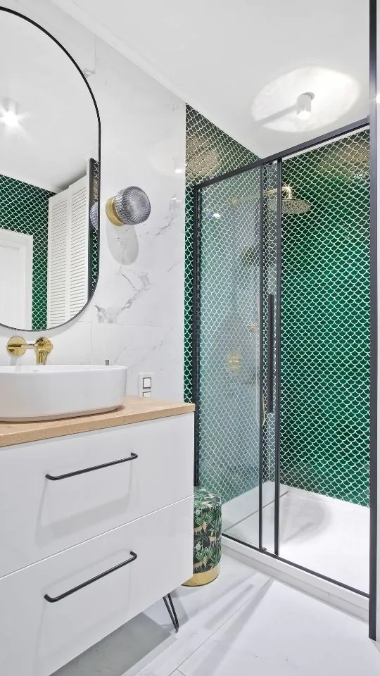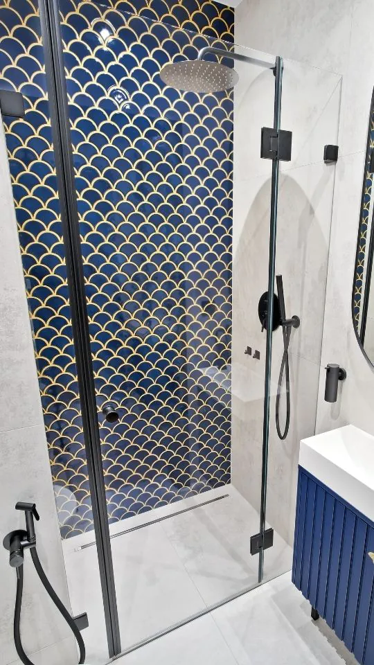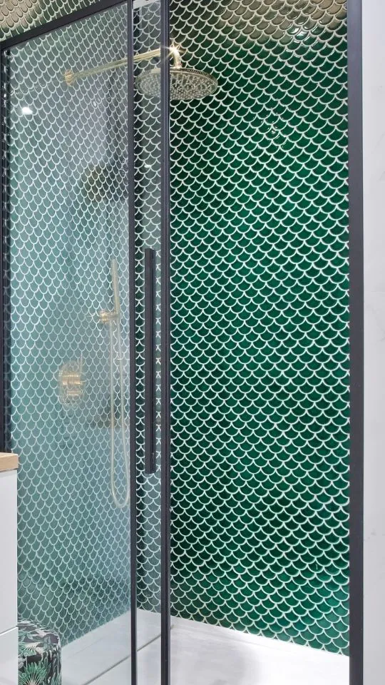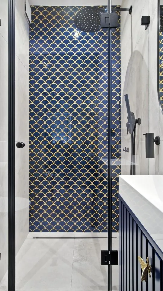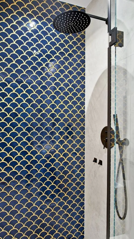Un mozaic care reprezintă elementul principal al decorului este o alegere pentru cei curajoși, care nu se tem să se evidențieze printr-un design original. Mozaicul de cea mai înaltă calitate, Flabellum Mic Emerald Lucioasă, utilizat ca perete decorativ în duș, înconjurat de marmură și aur, reprezintă luxul închis între patru pereți.