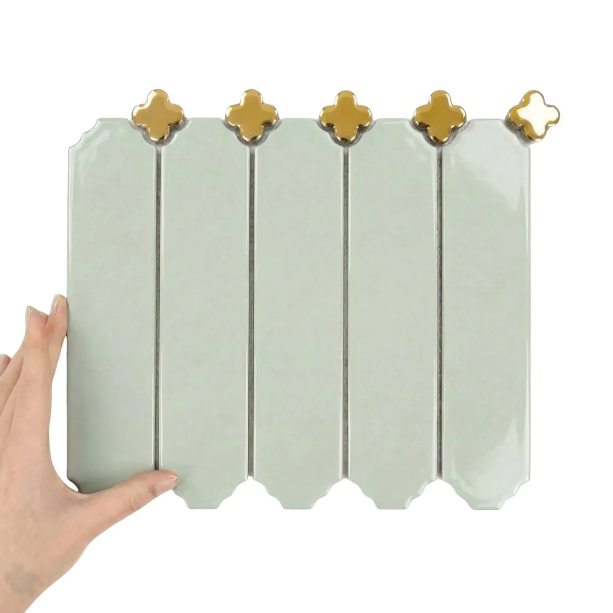 Płytka Cecile Sage Połysk ze Złotą Koniczyną