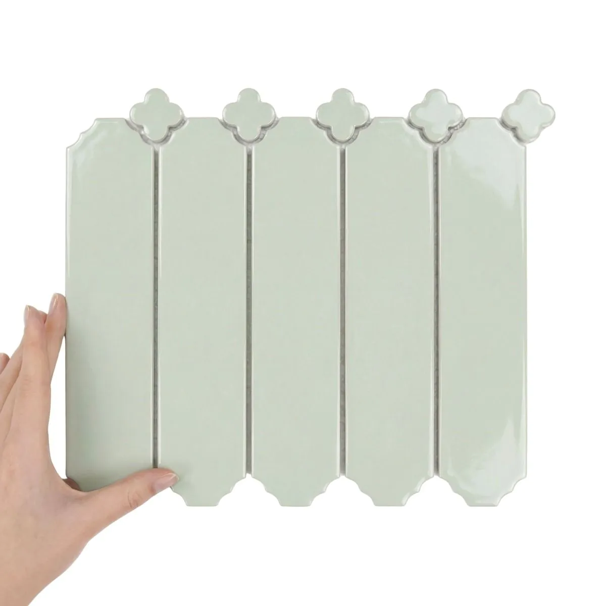 Kolekcja Cecile to wyjątkowa propozycja, powstała we współpracy z architekt Magdą Fornal, która sięgnęła po ponadczasowy motyw koniczyny, znany z dekoracji pałacowych i architektury Alhambry. Delikatnie zaokrąglone formy inspirowane naturą i sztuką ornamentalną tworzą wzór, który łączy w sobie subtelność i wyrazistość. Inspiracją dla Cecile Sage Połysk były właśnie klasyczne arabeski i geometryczne zdobienia, które od wieków symbolizują harmonię, piękno i elegancję. Architektoniczny charakter i ozdobna forma sprawiają, że kolekcja doskonale wpisuje się zarówno w nowoczesne wnętrza, jak i w aranżacje czerpiące z tradycji.